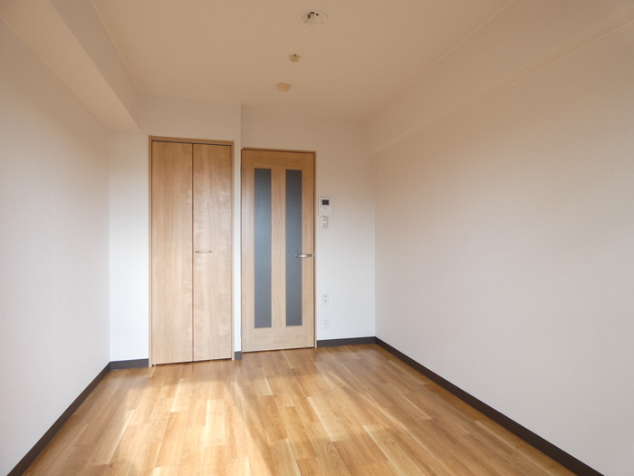 【広島市佐伯区楽々園:リノベーション賃貸マンション】元々3点式ユニットバスのお風呂を、シャワールームとトイレ別に分離し、お部屋の建具類から壁・床等全体をリノベーション☆キッチンも上部に収納のあるシステムキッチン!トイレは温水洗浄便座タイプです。お部屋の入口扉とクローゼットの扉、トイレのドアは同じテイストのナチュラルな雰囲気で統一。安心のモニター付きインターフォンも設置済みです☆