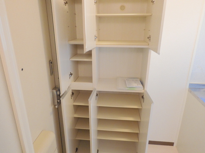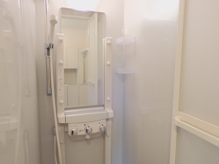 【広島市佐伯区楽々園:リノベーション賃貸マンション】元々3点式ユニットバスだったバスルームを、高機能シャワーとトイレに分離。キッチンもコンパクトながら2口ガスコンロのあるシステムキッチンに変更しました☆お部屋とキッチンの間の扉も、お部屋の雰囲気に合わせて変更。大容量のシューズボックスも設置しました。全体的にWhiteを基調とした清潔感溢れるお部屋になっています♪
