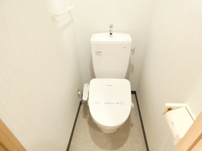 【広島市佐伯区楽々園:リノベーション賃貸マンション】元々3点式ユニットバスのお風呂を、シャワールームとトイレ別に分離し、お部屋の建具類から壁・床等全体をリノベーション☆キッチンも上部に収納のあるシステムキッチン!トイレは温水洗浄便座タイプです。お部屋の入口扉とクローゼットの扉、トイレのドアは同じテイストのナチュラルな雰囲気で統一。安心のモニター付きインターフォンも設置済みです☆