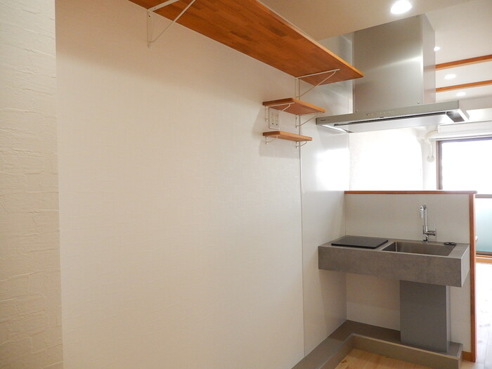 【広島市佐伯区楽々園:リノベーション賃貸マンション】元々3点式ユニットバスだったお部屋を、浴槽のあるお風呂とトイレを分離し、洋室やキッチンも一新したお部屋が空きます☆随所に木をふんだんに使ったお部屋で、天井には梁のようなアクセントになる木を渡し、側面の窓にも同じ木を使った格子を設置。床も木目が美しいフローリングになっています。キッチンはオシャレなステンレスのシンクタイプでシンプルに。一人暮らしに使い易い昨日は持たせて木の温もりのあるお部屋に仕上げています。