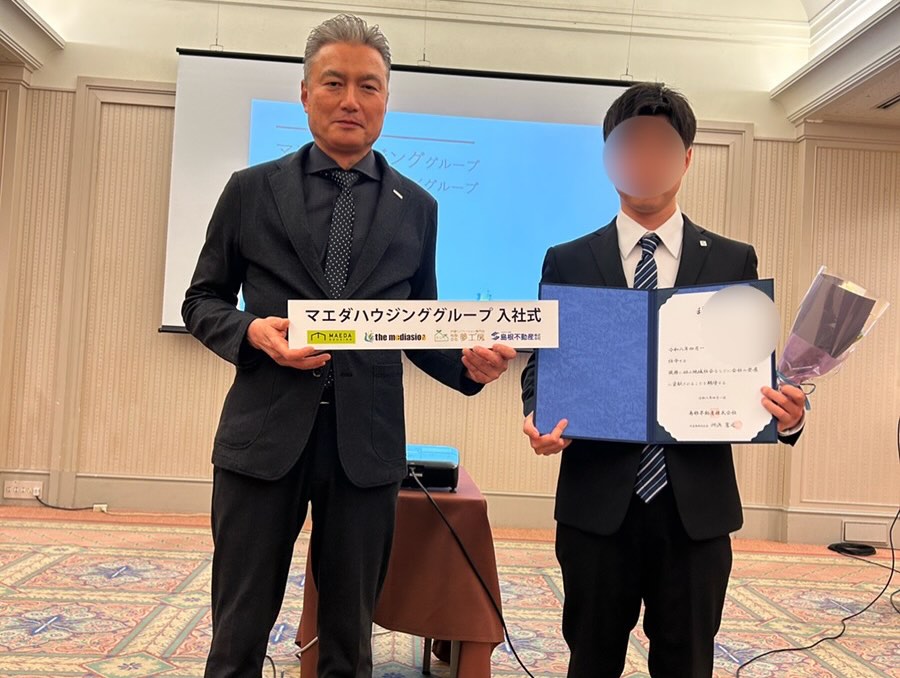 4/1にマエダハウジンググループ全体で総勢16名の新入社員さんの新たな出発をお祝いしました。